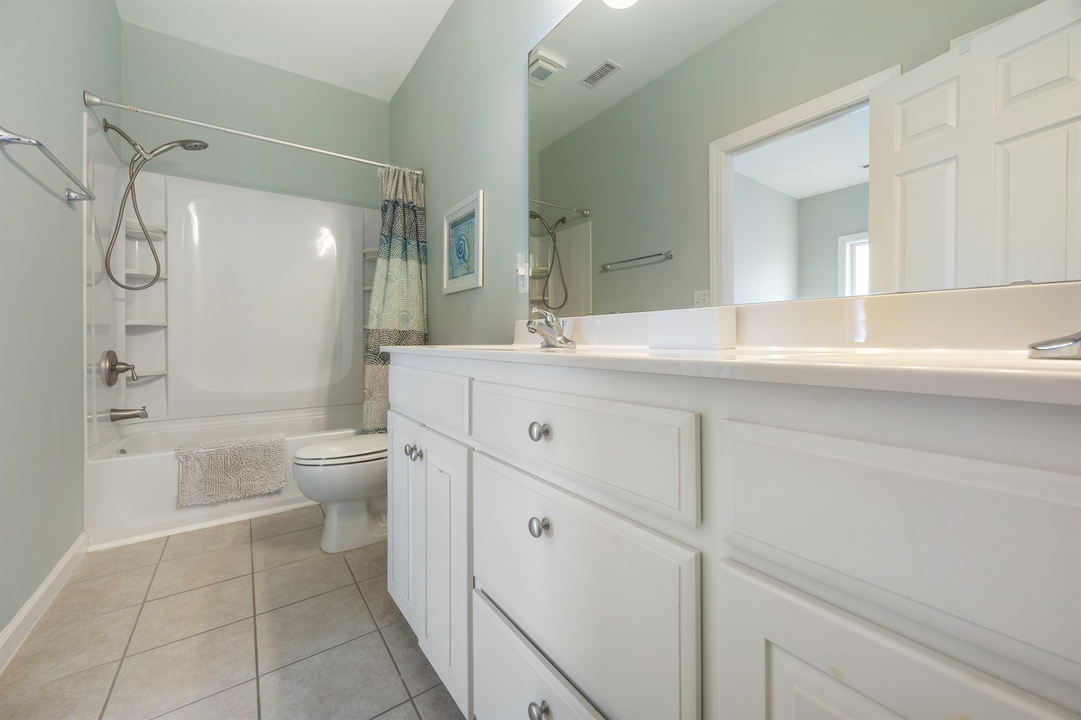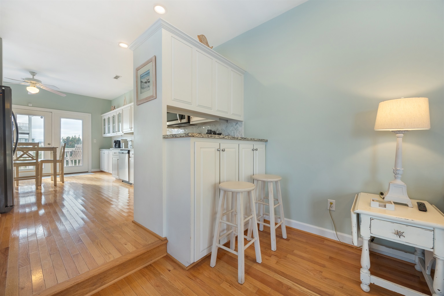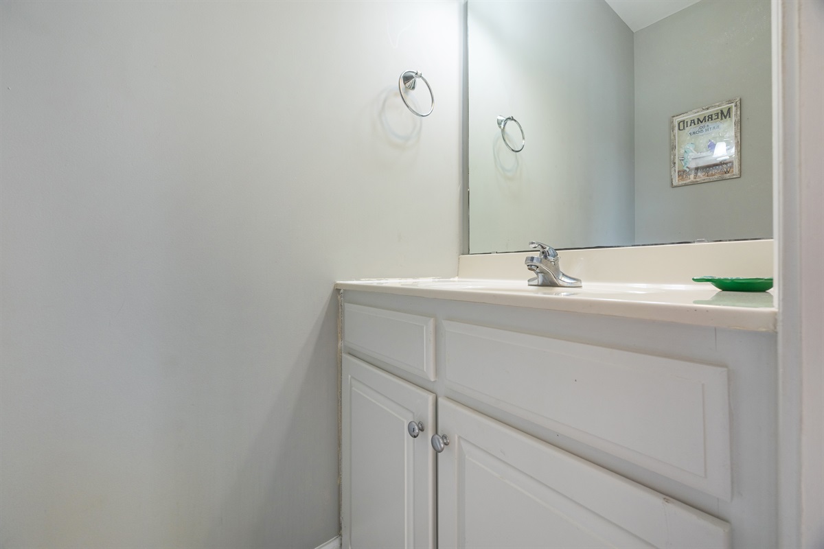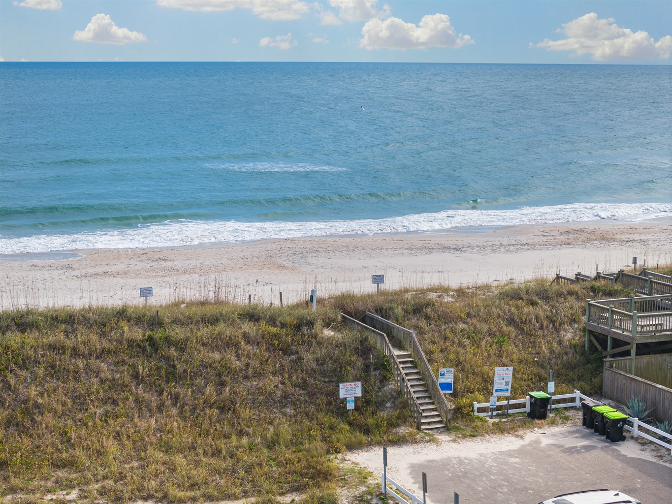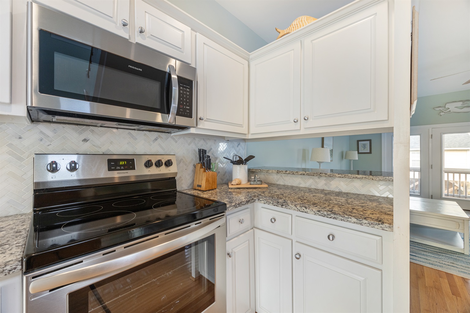 The large and spacious kitchen is located off of the living room and equipped with everything you need for easy meals at home. A dining table for four provides the perfect spot for shared breakfasts, family dinners, or game nights. The layout is convenient and guest-friendly, with direct access to the front balcony so you can step outside for fresh air, drink your morning coffee, sip your evening cocktail, or dine outdoors. Just off the kitchen, you’ll find a stacked washer/dryer, as well as a half bathroom, making it simple for guests to freshen up without going upstairs. It’s especially handy during mealtime, beach days, or when entertaining.