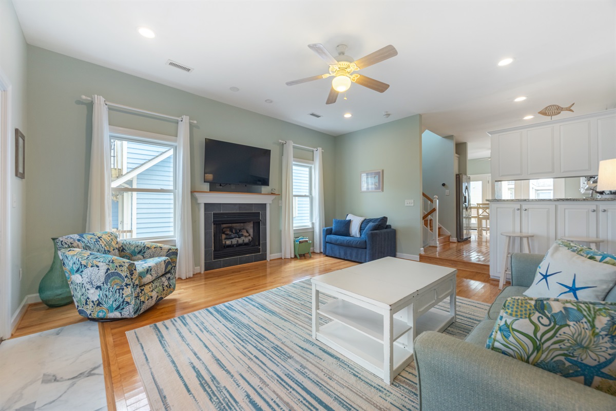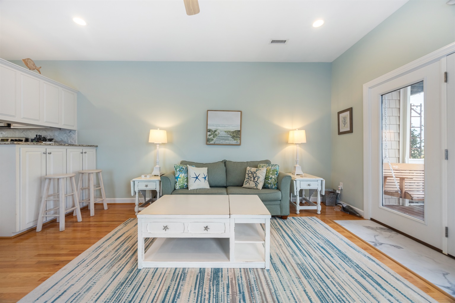 Settle into a bright and airy living space designed with a relaxed coastal vibe. The open layout and abundant natural light create a welcoming space where everyone can spread out and unwind. Plenty of seating, soft beach-inspired décor, and a calming color palette make it the perfect place to relax after sun-soaked days. Whether you're enjoying a quiet morning, hosting a cozy movie night, or simply lounging together, this spacious living area invites you to slow down and enjoy the island atmosphere.