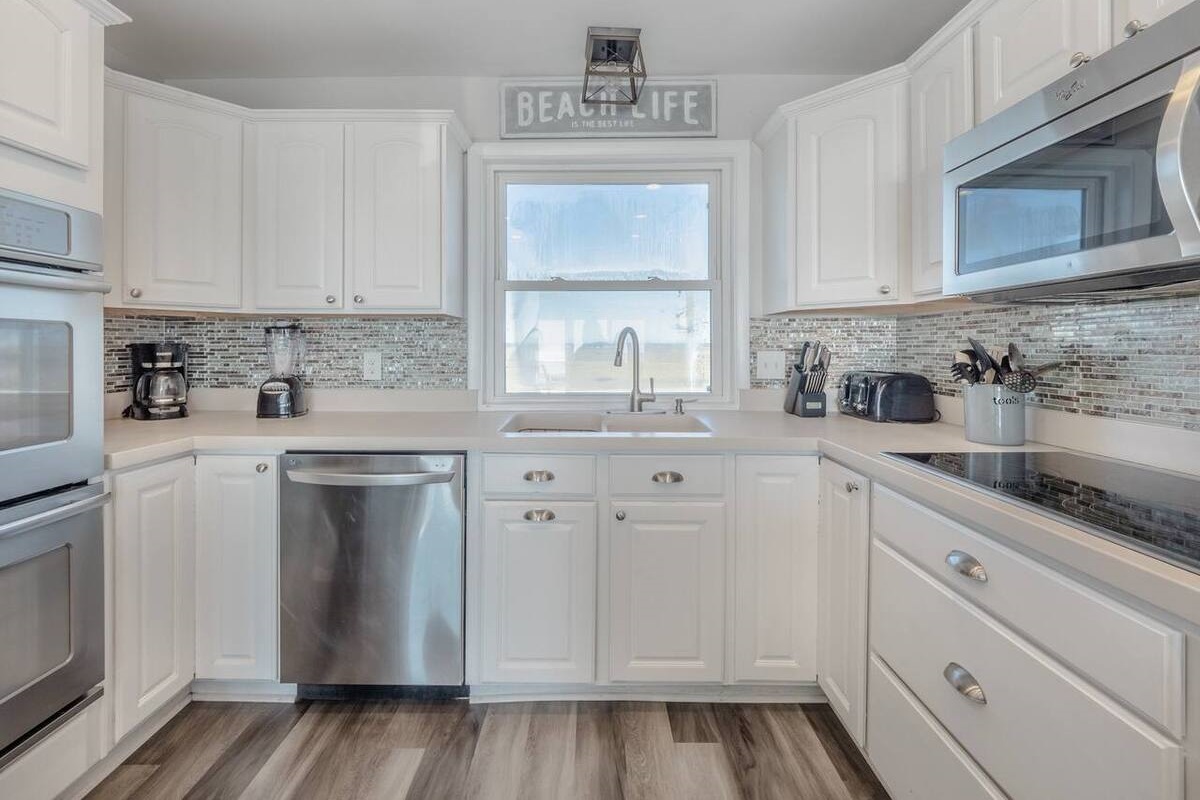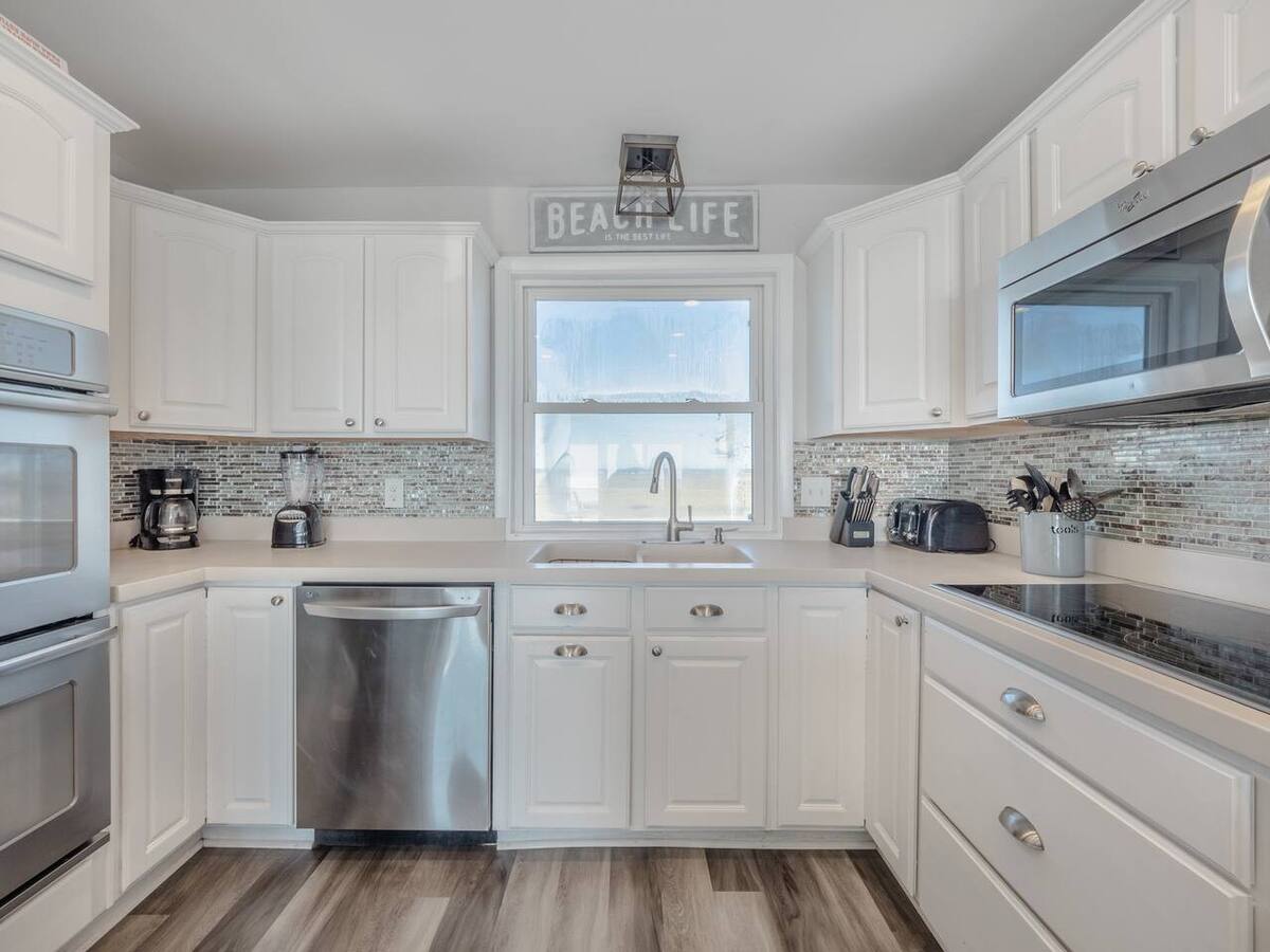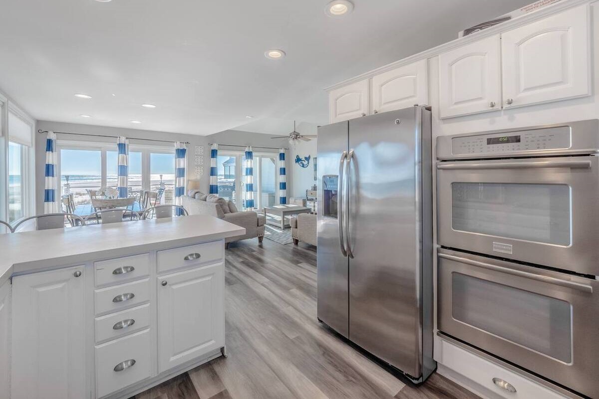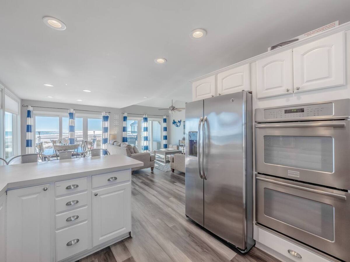 Designed for both relaxation and connection, this home features spacious living areas filled with natural light and panoramic views from nearly every window. The fully stocked kitchen is designed to make dining in effortless. Featuring modern appliances and all the essentials you need, it’s perfect for everything from quick beach snacks to full family meals. You’ll find cookware, utensils, and plenty of dishware to accommodate your group, along with conveniences like a blender, toaster and coffee maker to start your mornings right. Whether you're preparing fresh local seafood or gathering around for a casual meal, this kitchen offers both functionality and comfort for every stay.
