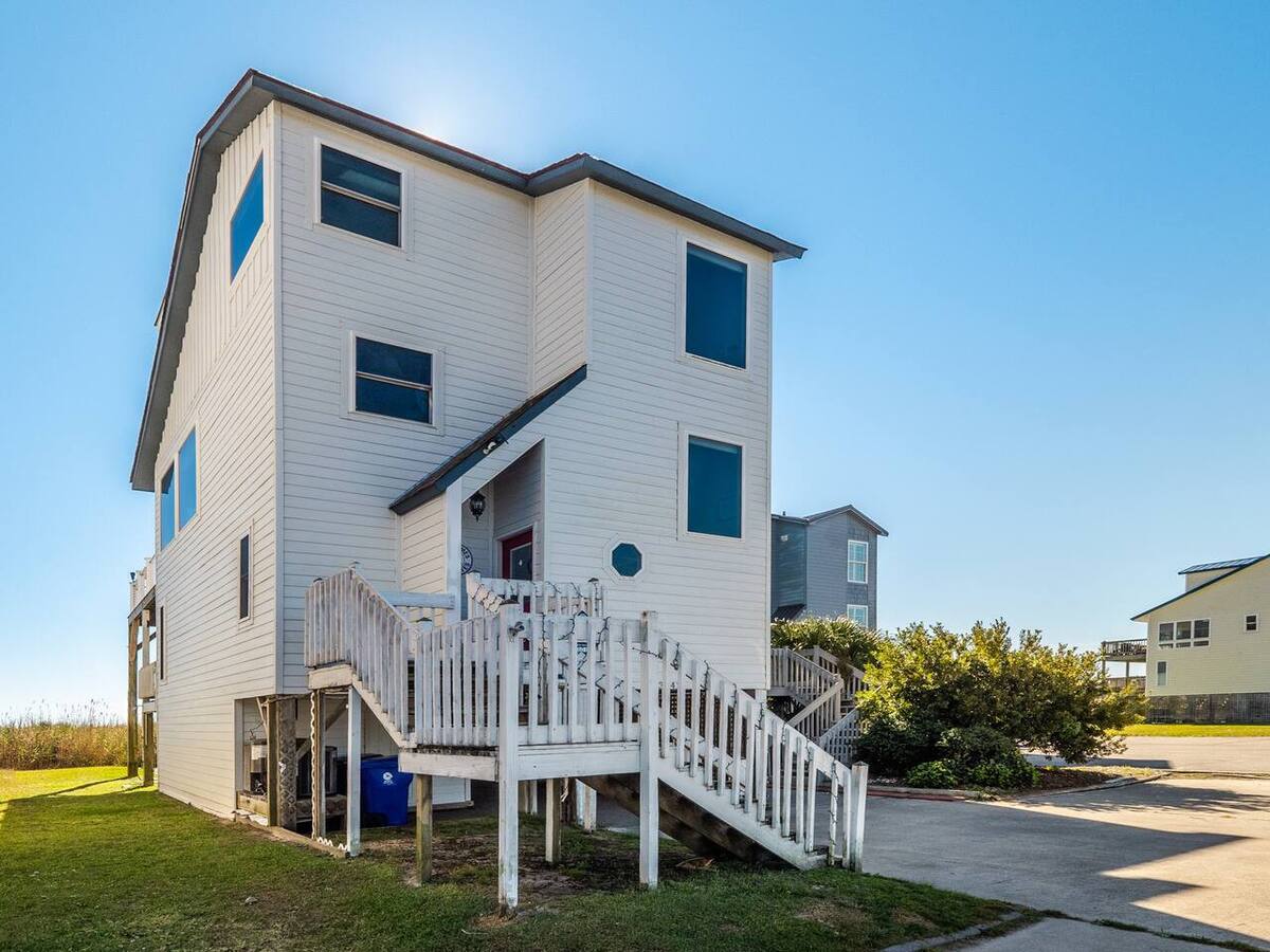 4 Bedrooms • 4 Bathrooms (3 full, 1 half) 4 Baths (3 full, 1 half) • Sleeps 1-8Welcome to Good Times and Tan Lines, an oceanfront duplex perfectly situated on the very tip of North Topsail Beach. This home offers 4-bedrooms, 3.5-bathrooms, and offers breathtaking 360-degree water views, where the Atlantic Ocean surrounds you with endless blue horizons and soothing coastal breezes.
