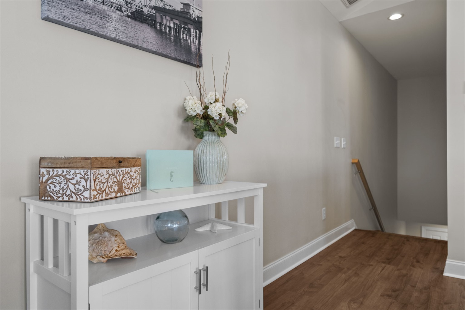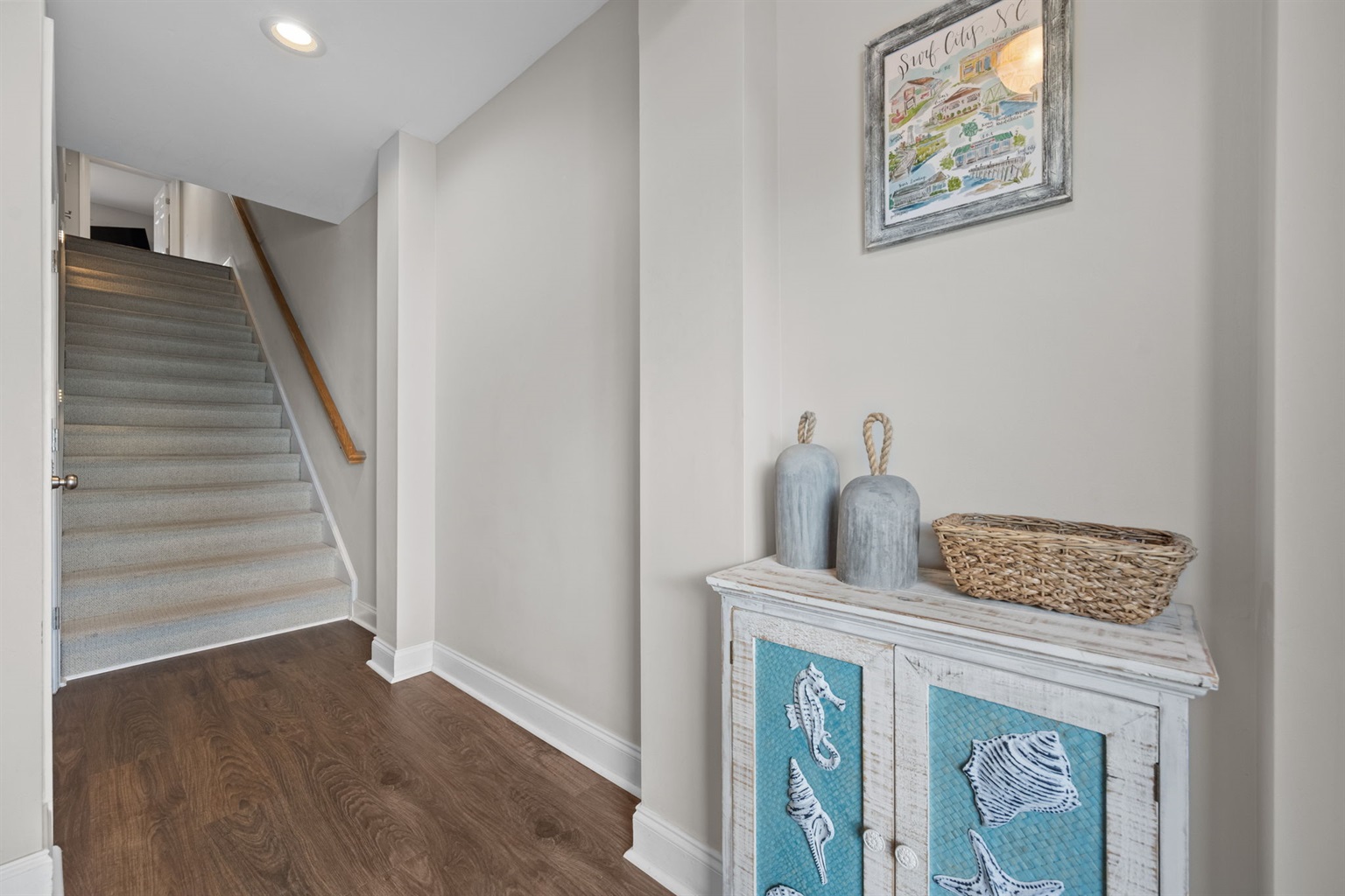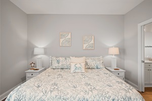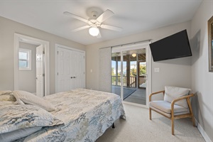 Inside, discover a haven of tranquility and style, boasting tasteful coastal decor and all the comforts of home. The top floor host an open, spacious living area, primary bedroom, a dining area and a fully stocked kitchen, perfect for whipping up delicious meals after a day of seaside adventures. As evening falls, gather around the large dining table for friendly board game battles while making timeless memories. The top floor primary bedroom offers an ensuite bathroom, a comfortable King sized bed, plenty of storage and a private deck with views of the Intracoastal Waterway.