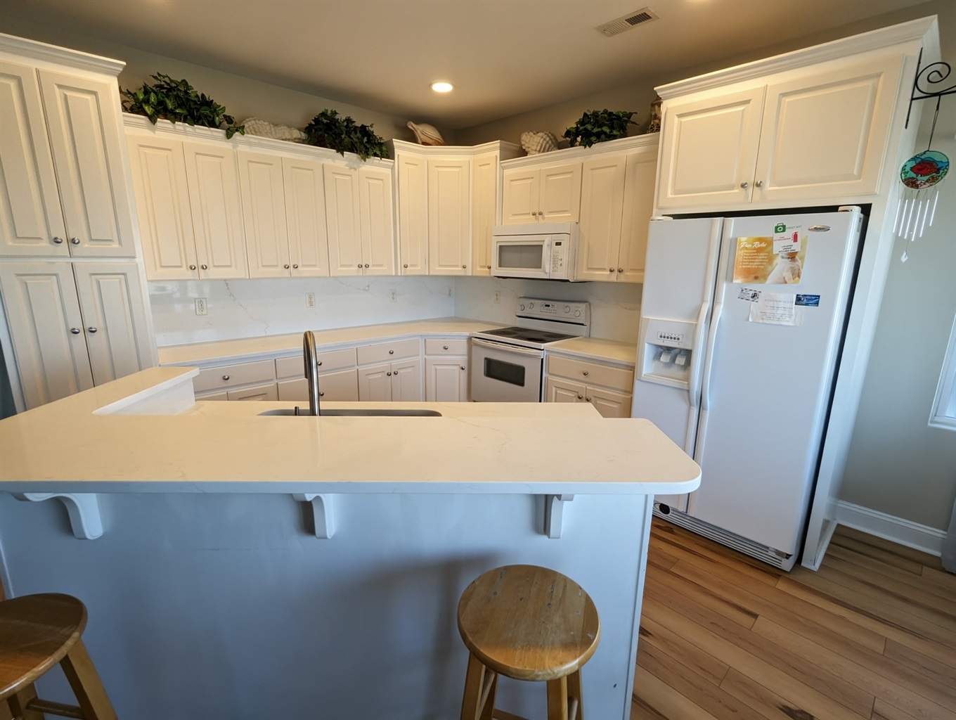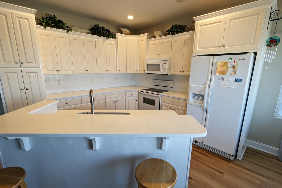 The reverse floor plan places the main living area on the top level to maximize the views. The bright and open living room invites you to relax with a movie, dive into a book from the well-stocked library, or simply enjoy time together. The fully equipped kitchen makes meal prep a breeze and includes a flat-top stove, microwave, dishwasher, coffee maker, blender, and ice maker. The primary suite features a comfortable king-sized bed and its own ocean-view deck —the perfect spot for a quiet evening under the stars. The en-suite bathroom includes dual vanities, a jetted tub, and a separate walk-in shower. Entertainment options are abundant, with TVs in the bedrooms, DVD players, family games, books, and more. You’ll also have Wi-Fi, ceiling fans throughout, and a washer/dryer. Book your stay today and experience the perfect mix of comfort, convenience, and coastal charm on Topsail Island!
